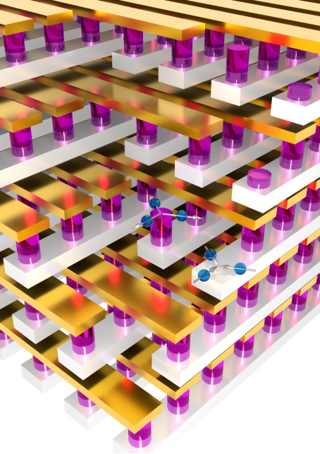 图3:多层堆叠、密排列的全反铁磁随机存取存储器ARAM的展望示意图