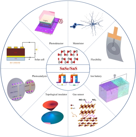 图4 研究展望:SnSe的跨领域应用前景。主要包括热电转换、光电探测、太阳能电池、光催化、拓扑绝缘体、气体传感器、离子电池、柔性和忆阻器等。(图来源:Mater. Lab 1 (2022) 220006)