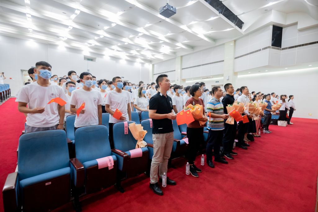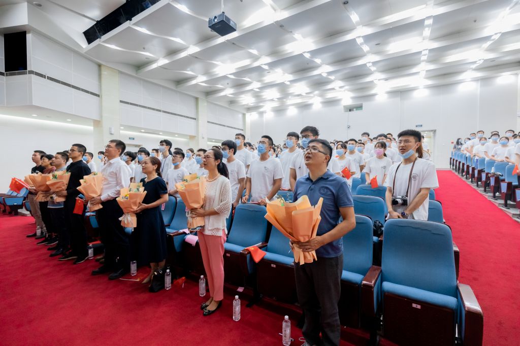 典礼最后,全体师生挥舞着手中的国旗、党旗,齐声高唱《没有共产党就没有新中国》,气势恢宏,把最好的祝福献给党和祖国。在嘹亮的歌声中,开学典礼圆满结束。
