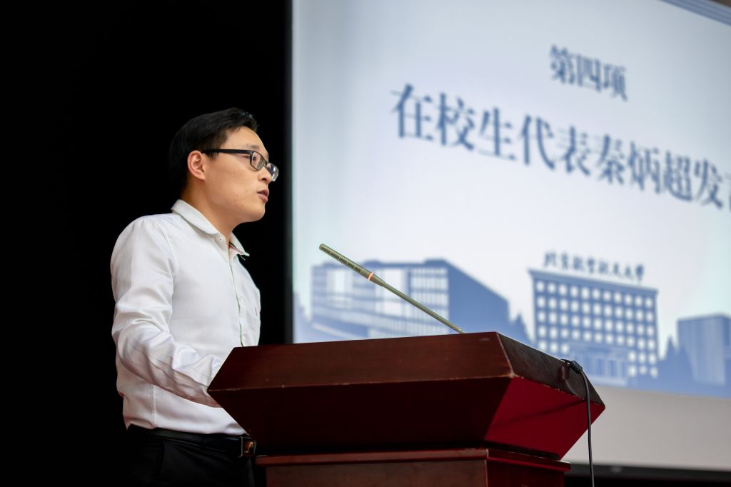 在校生代表秦炳超发言