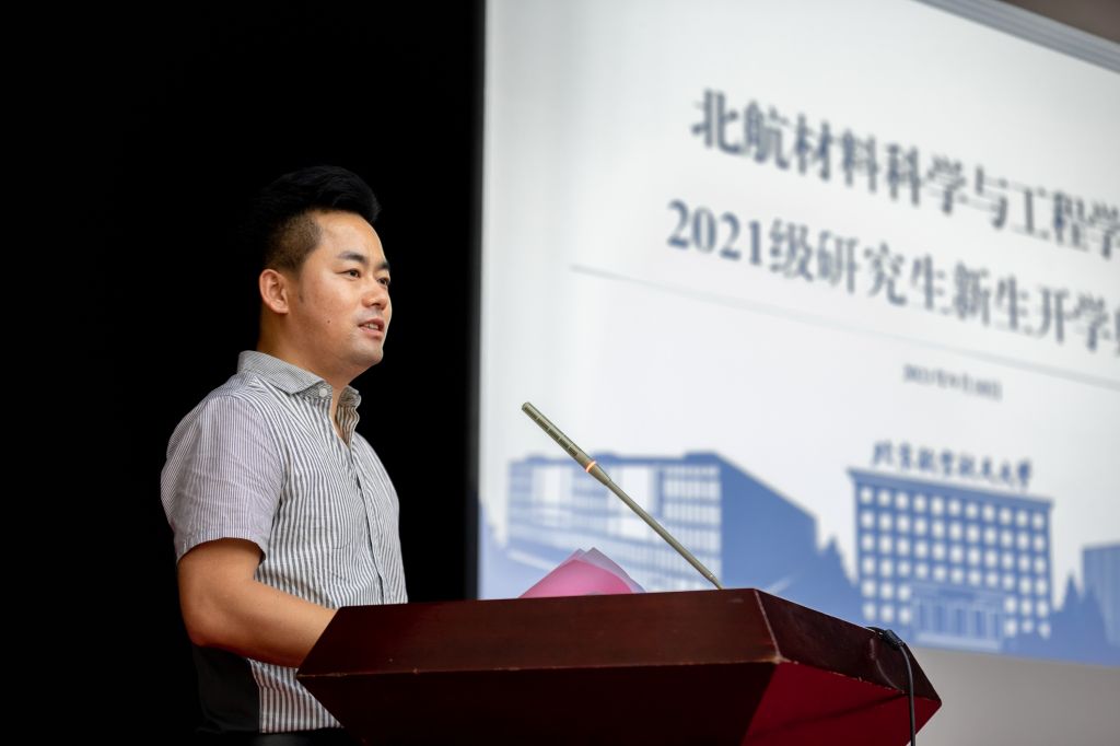 在校生代表2019级博士研究生秦炳超分享了自己在yl23411永利八年来的成长经历,并向在座的2021级全体研究生新生描述了科研成长中的思考,每一个日夜的奔赴与不懈让他从科研“小白”蜕变为Science第一作者,而面向国际学术前沿、瞄准国家重大战略需求终是材料学子永远的初心与使命。