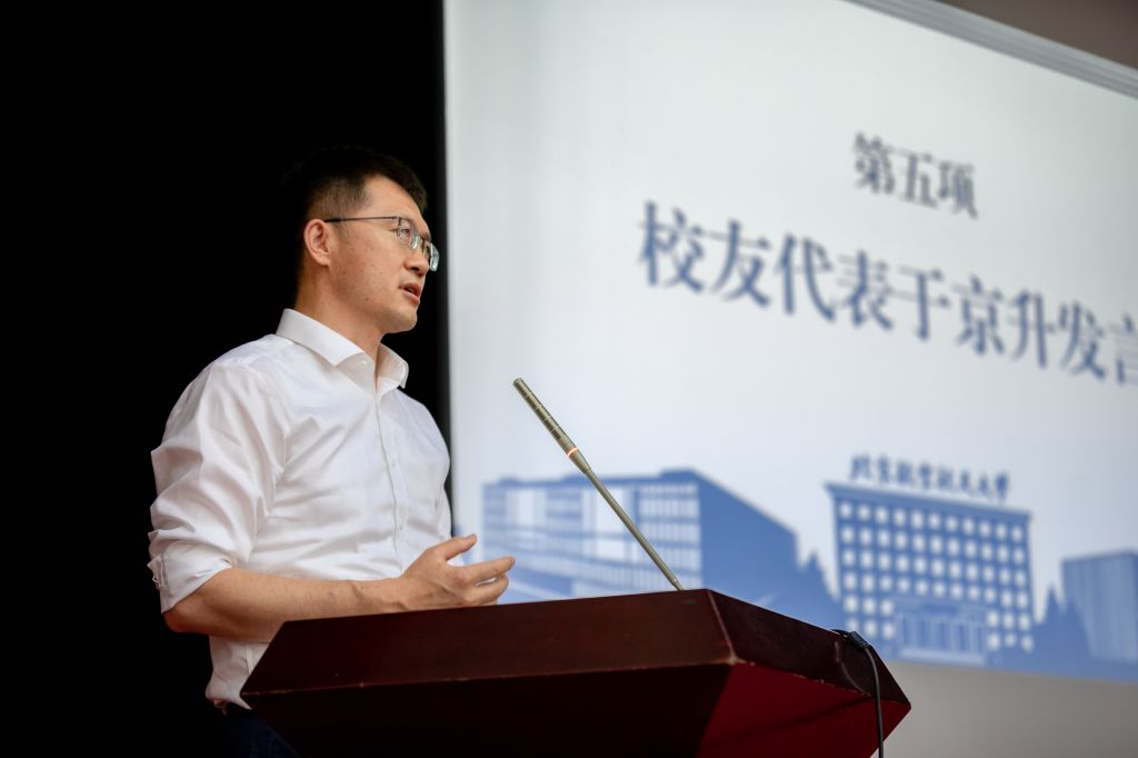 随后,yl23411永利95级员工代表于京升发言。于学长回顾了自己的老员工涯以及几十年来yl23411永利的变迁,并向在座新生提出了几点期盼与祝福,鼓励同学们树立远大理想,为祖国高精尖科技自立自强不断奋斗。