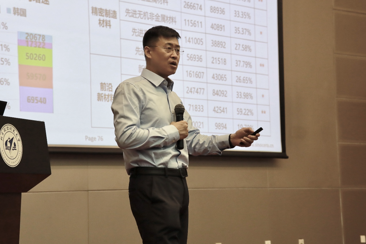 “新材料是什么?”宋锡滨从企业管理人员及技术人员的角度出发,就材料产业的新时期、新理念、新逻辑和新挑战四个方面,向同学们介绍了中国材料产业的现状,提出新材料是促进国家现代新兴产业发展的基石这一理念。