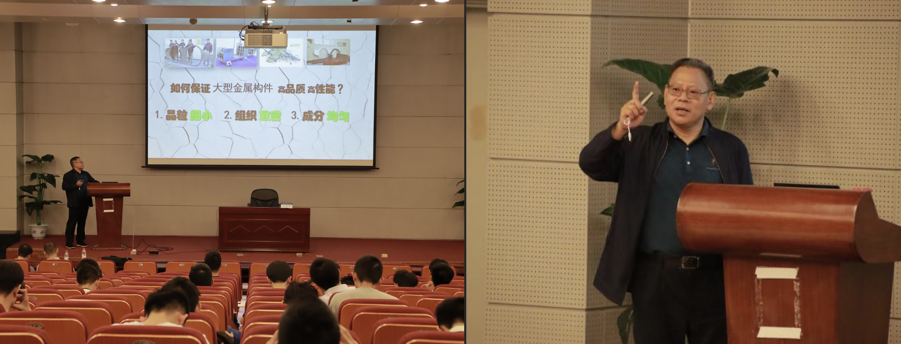 王院士通过大量的图片和生动的科研故事,带领同学们近距离接触“国之重器”。他率领团队,历经30年持续创新研究,在国际上首先突破了钛合金等高性能大型关键金属结构件激光增材制造核心关键技术,使我国跻身于世界唯一突破飞机钛合金大型关键主承力构件激光增材制造技术并实现工程化应用的国家。