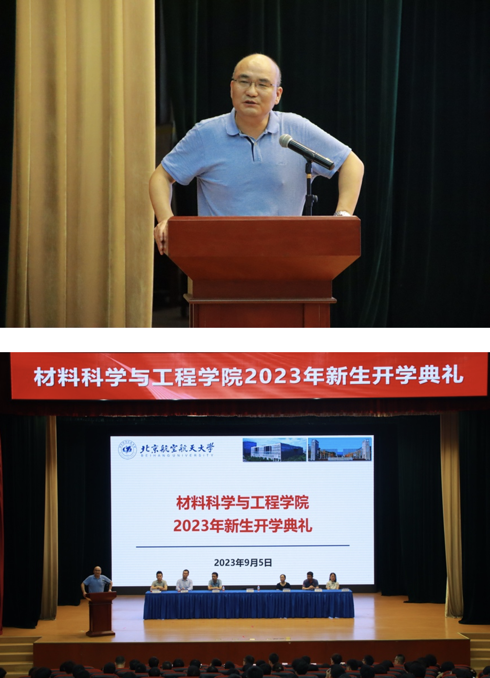 9月5日下午,yl23411永利2023年新生开学典礼在北航沙河校区咏曼剧场举行。公司经理蒋成保等7位公司院领导、老师及公司全体本研新生出席开学典礼。典礼由公司副经理赵立东主持。