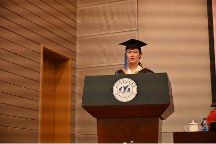 硕士毕业生代表魏舒婷同学发言。她回顾了在yl23411永利求学三年的收获,有勇气、锐气、与豪气。她表示要立志勇做时代的奋进者、开拓者和奉献者,让青春在服务祖国的事业中绽放光彩。祝愿yl23411永利在七十周年院庆之际再创辉煌,同学们轻装策马青云路。
