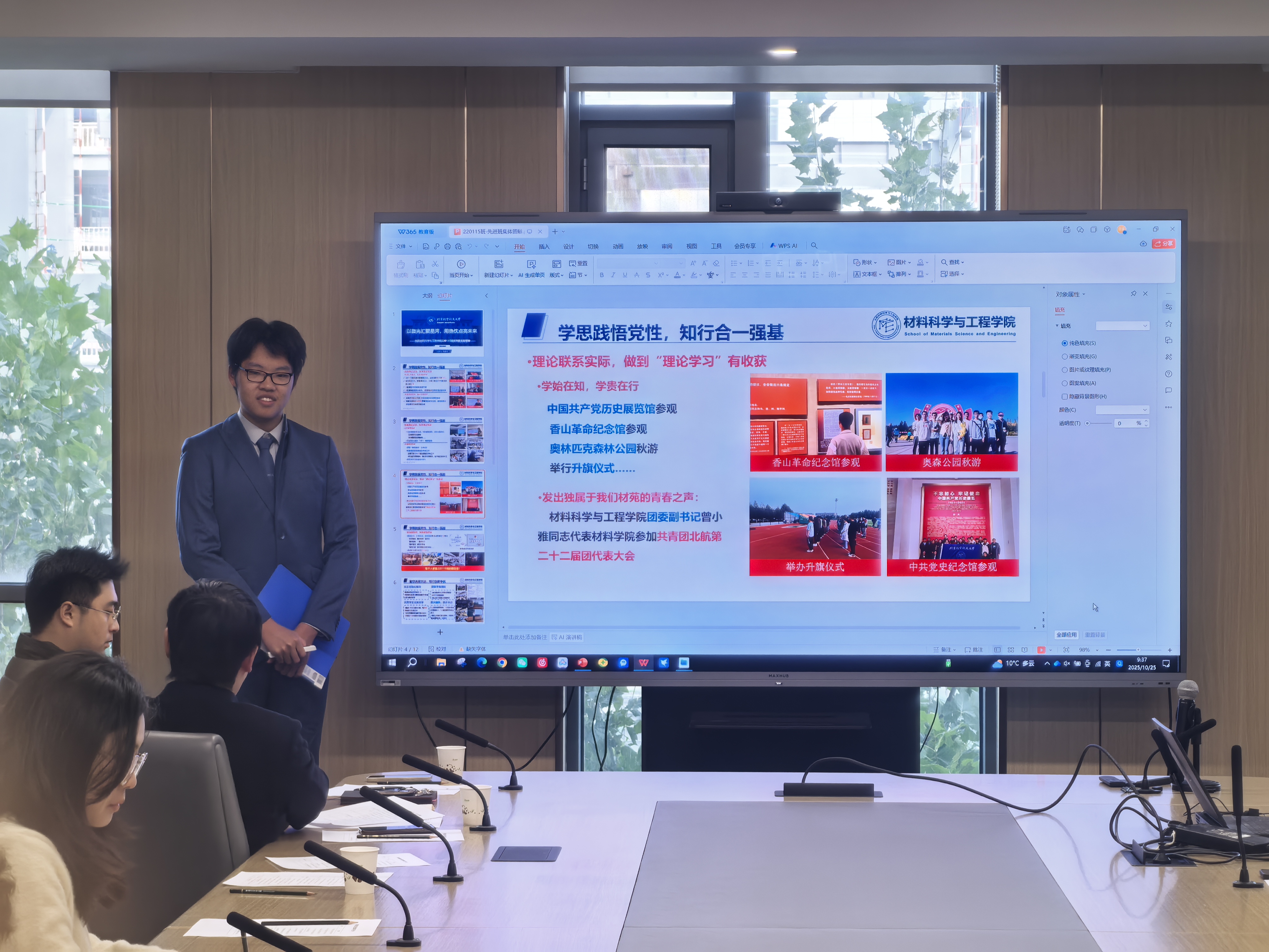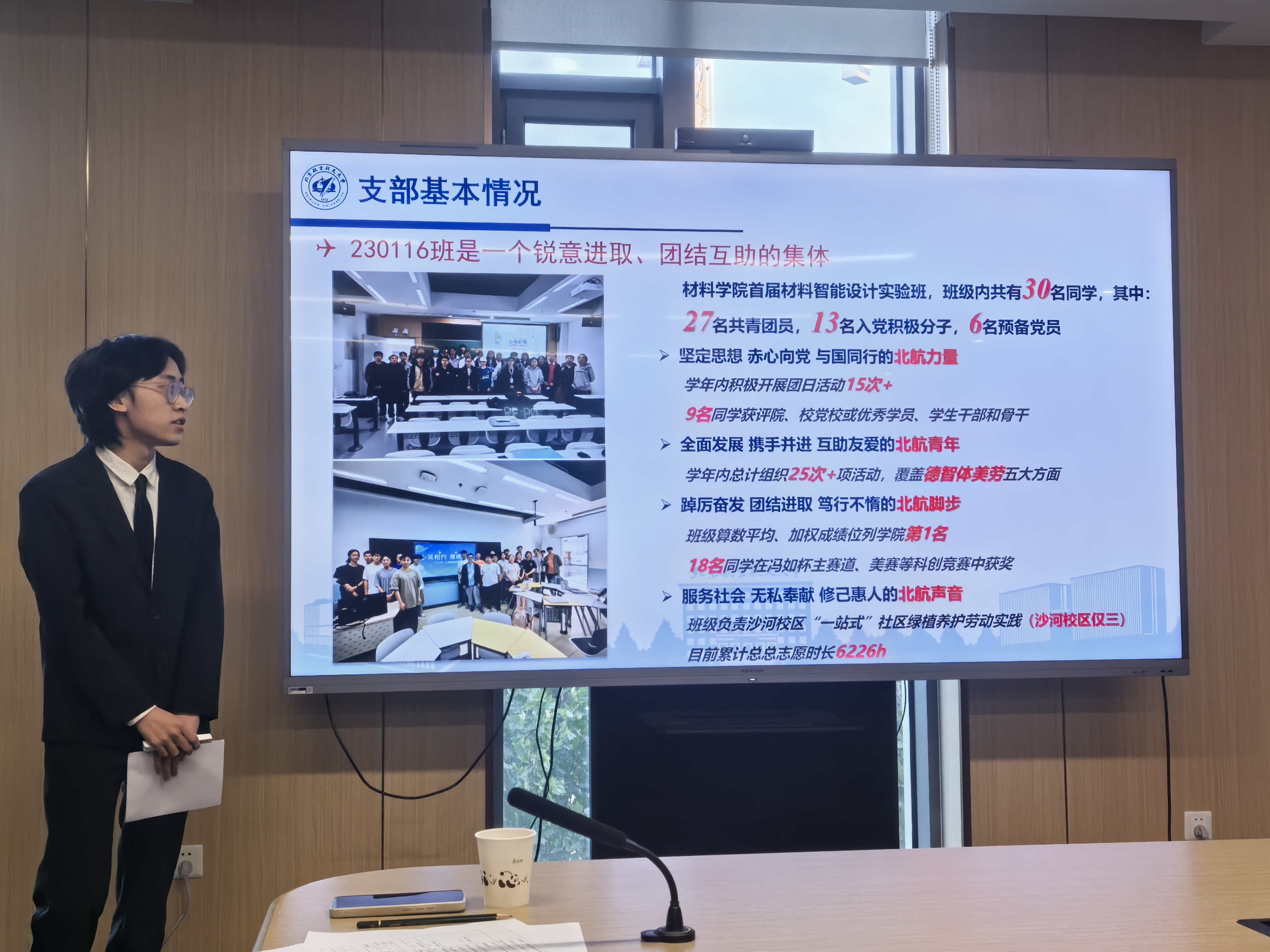 本次先进班集体答辩全面展现了材料学子的青春风采与集体力量。各班级以党建为引领,学业科研、文体实践齐头并进。SY24013、SY24014班突出思想引领与志愿服务,凝聚力强、氛围浓厚;ZY24011、ZY24012班以科研创新为特色,学术成果显著,社会实践成果丰硕;ZY24013班以党建带班建,全面发展、奋发进取;220115班学风优良、科研突出,志愿服务超4000小时,展现笃行实干的青年担当;230116班注重理论学习与班级建设,成绩优异、团结奋进。各班以实际行动诠释了北航材料学子锐意进取、知行合一的精神风貌。