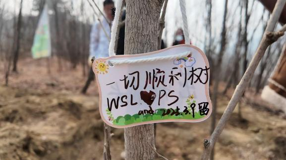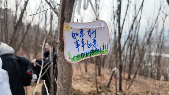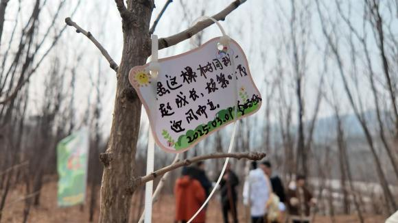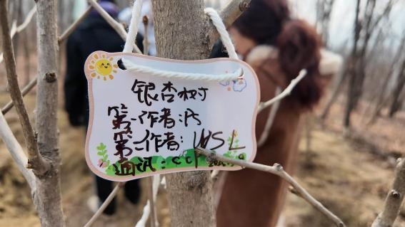 本次志愿植树活动以银杏树为主,银杏树生命力顽强,历经风霜而不改其本色,正象征着坚韧不拔与延续的力量。活动安排每位党员独立栽种一棵树苗,这不仅让每个人都亲身参与到植树的全过程,也让大家深刻体会到保护生态的责任感。在相互帮助和工作人员指导下,大家很快就掌握了技巧,有人负责挖坑,有人扶正树苗,有人填土浇水,现场热火朝天又井然有序。每一棵银杏树苗的栽种,都承载着党员们对绿色家园的美好祝愿。党员们还将写满心愿的祝福牌挂在树苗上,这些祝福牌不仅寄托了对树苗茁壮成长的期盼,也象征了党员们对自身成长与发展的期许。有党员写道:“愿这棵树与我一同成长,根深叶茂,迎风而立。”这既是他们对树苗的祝福,也是他们作为党员对自己未来的展望。